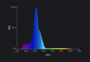 ReefLED 的 REEF-SPEC 蓝色通道为 100% PUR,因此由于 PAR 测量仪无法检测到的紫外线波长,此通道的 PUR 实际上会略高于测量的 PAR。