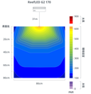 ReefLED正下方, 接近水面下的PUR/PAR值。
