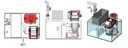 该安装选项允许在不进行任何改装的情况下使用底滤缸和补水缸,但因空间狭窄,在维护蛋分(RSK-300)时较难操作,ReefMat 500滤材篮也只能通过过滤仓才能进行操作,并且没有空间放置其它设备或藻缸。 需要裁短带阀门的下水管和溢流管,以绕过底滤缸现被搁置的干燥位置。